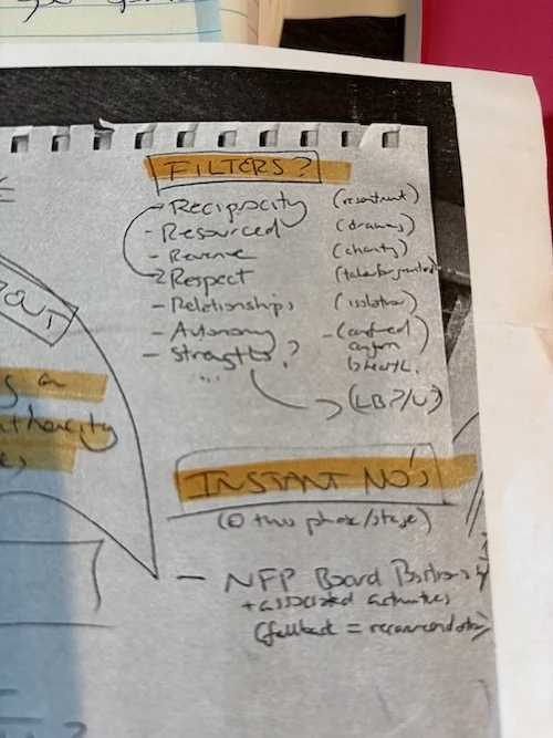 We also identified her "Instant No's", the non-negotiables that are a part of this chapter of her business (they may change in the next):